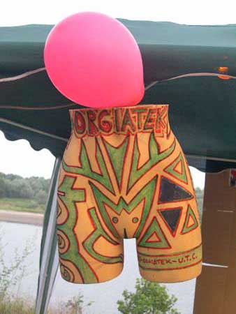 Sound modesto gelosamente "presieduto" da una graziosa bambola cyber, con bassi potentissimi che a poco a poco sono in grado di conquistare tutto il tuo ventre e il resto del corpo; il gazebo della band che aveva già suonato quando siamo arrivati; un pezzo di manichino appeso incitante un orgiatek che poi non si è vista, la presenza di donne ai piatti che mi ha fatto un estremo piacere visto che, da quello che la poca esperienza mi dice, è raro.